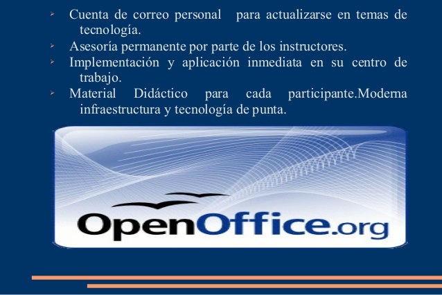 3. ➢ Cuenta de correo personal para actualizarse en temas de tecnología.➢ Asesoría permanente por parte de los instructores.➢ Implementación y aplicación inmediata en su centro de trabajo.➢ Material Didáctico para cada participante.Moderna infraestructura y tecnología de punta.